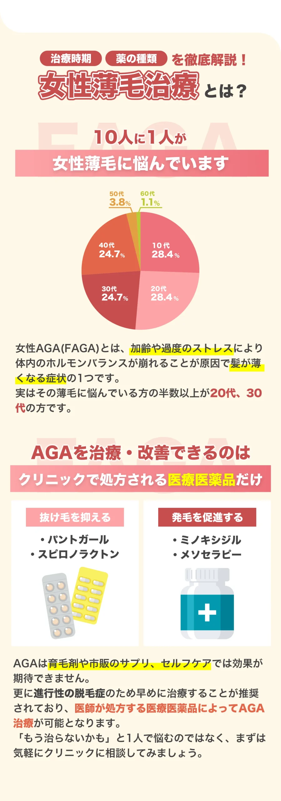 FAGA(女性男性型脱毛症)とは、女性の薄毛の総称を指す言葉です。