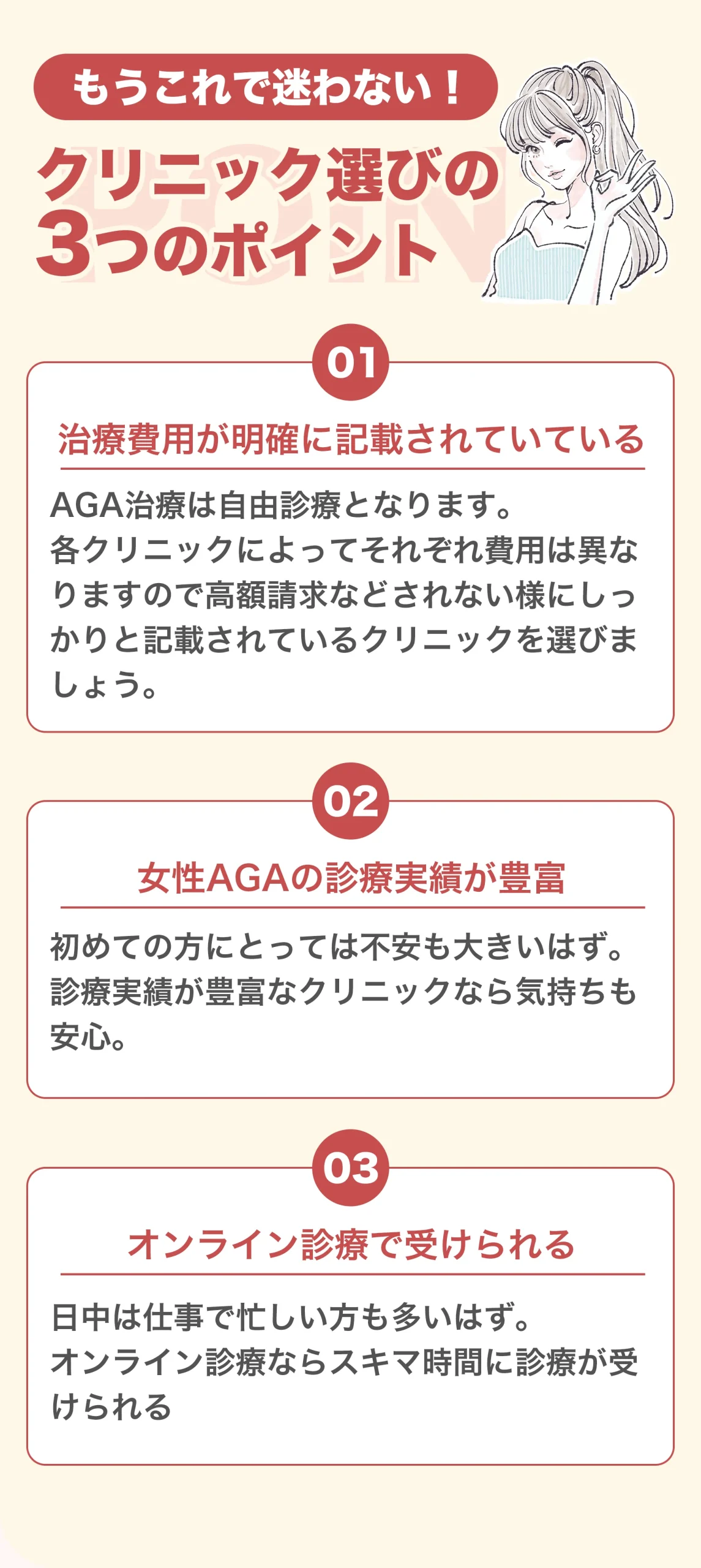 女性薄毛治療診療のクリニック選びのコツ